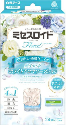 【送料込・まとめ買い×40個セット】白元アース ミセスロイド フローラル 引き出し用 1年間有効 ホワイトアロマソープの香り 24個入