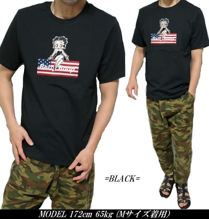 ベティーブープ ベティちゃん tシャツ 服 グッズ ベティ・ブープ Tシャツ メンズ 刺繍ロゴ 星条旗/ワンポイント 半袖 ブラック/ホワイト キャラクター betty boop M-XL