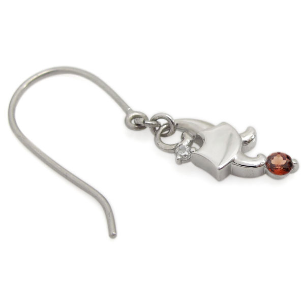 プラチナ 猫 ピアス ネコピアス ガーネット フックピアス