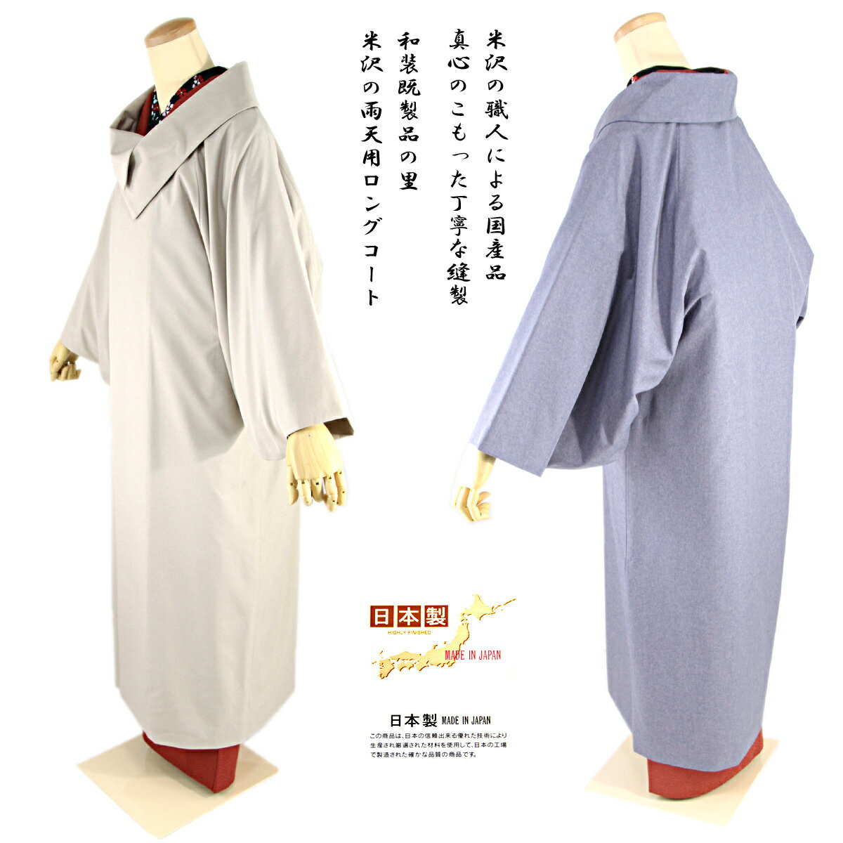 和装用レインコート 和装用コート 着物用コート ロール衿 女性用 持続撥水素材 合繊 山形県米沢市の職人による国産品 真心のこもった丁寧な縫製でお届けいたします 女物の和装用ロングコートです。