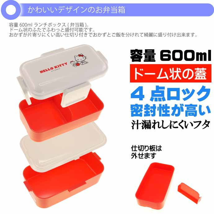 SIAA抗菌加工 銀イオン(AG)で抗菌 2段式ふわっと盛付可能なランチボックス SKATER(スケーター)キャラクターグッズ 入園 入学 グッズ 用品 給食セット 4973307557927 PFLW4AG ハローキティ キティちゃん&タイニーチャム デザインの 日本製 容量600mlランチボックス(弁当箱)。
