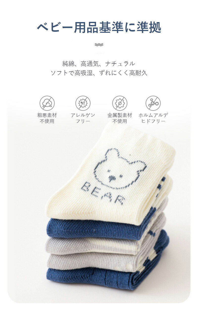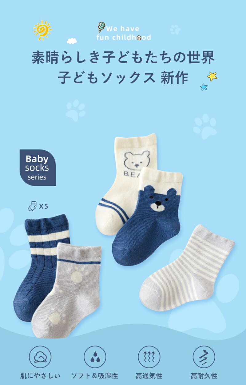 商品詳細 子どもソックス 5足組 サイズ 15cm-18cm:(3-5歳)子供にお勧め18cm-20cm:(6-8歳)子供にお勧め 製品詳細 素材:ライクラ素材は綿との相性が抜群ですので、ソフトで高伸縮性だから、ゆるみにくく、変形しにくい素材です。