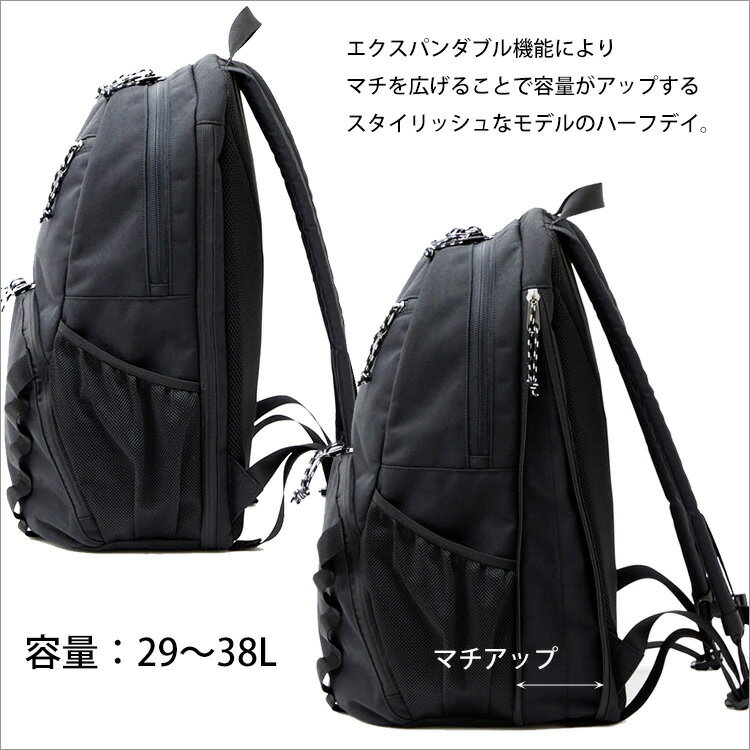 【SPALDING スポルディング 50-017 ハーフデイ エクスパンダブル リュックサック】 エクスパンダブル機能によりマチを広げる事で、容量がアップするスタイリッシュなモデルのハーフデイ。