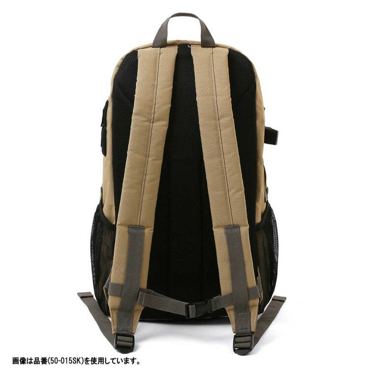 ■BASKETBALL / バッグ・リュックサック / ハーフデイ●素材:ポリエステル●サイズ:W27×H49×D26cm●容量:35L●カラー:ブラック、サンドカーキ●正面に配置したモールストラップが特徴的なミリタリーテイストのバッグパック。