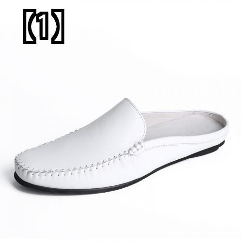 かかとなし シューズ レザー メンズ 韓国 春夏 サンダル ブリティッシュ 履きやすい シンプル おしゃれ 黒 白