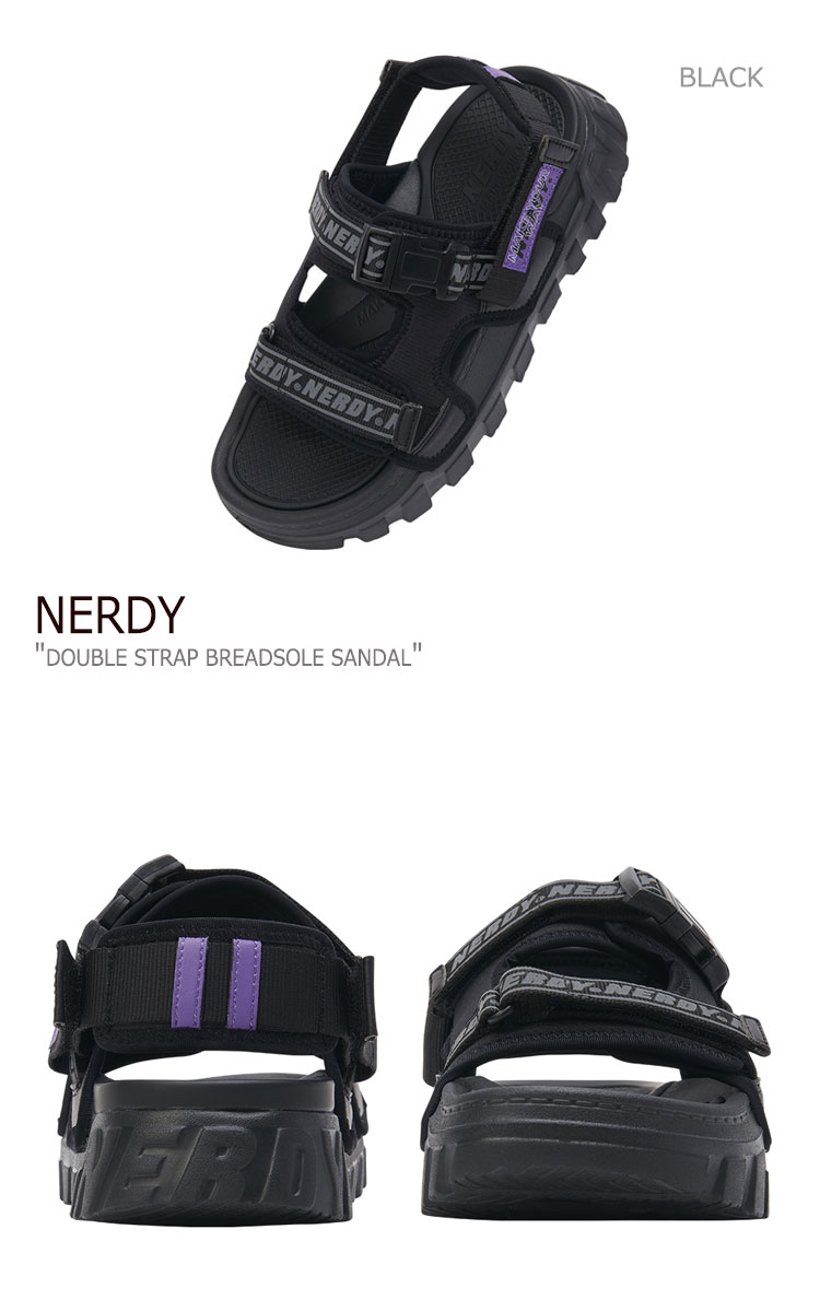 ノルディ サンダル NERDY メンズ レディース DOUBLE STRAP BREADSOLE SANDAL ダブル ストラップ ブレッドソール サンダル BLACK ブラック WHITE ホワイト PURPLE パープル LIME ライム ノルディー シューズ NERDY(ノルディ)は韓国を代表するストリートカジュアルブランド! キュートかつクールなデザインは韓国内外からも人気があり、韓国のストリートのトレンドシーンで見ない日はない毎年大注目のブランドです。