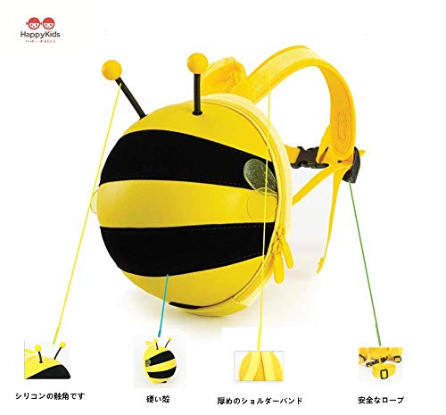 色:イエロー Happykids ミツバチ子供用リュック 迷子防止ひもリード付き 外出バッグ 幼児ハーネス 転倒防止 外出(黄色)