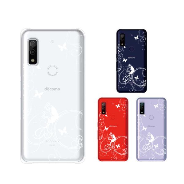 au ケース 【arrows We FCG01 / GRATINA KYV48 / BASIO4 KYV47 / rafre KYV40 / Qua Phone QZ KYV44 / PX LGV33 / miraie f KYV39 / KYL23 / isai Beat LGV34】 ラグジュアリーライン1 蝶 シルエット 白 ホワイト スマホ ケース ハード カバー スマホケース