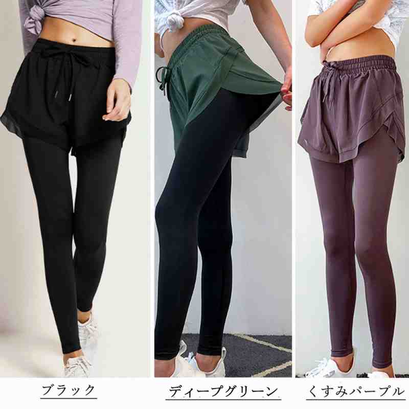 サイズ・容量 ヨガレギンス ショートパンツ付き フィットネスパンツ ポケット付き ジムウェアトレーニングパンツ ダンス 衣装 ウエストゴムショートパンツ一体型レギンスなので、着脱が楽々ポケットがついており、スマートフォンや音楽プレーヤーを入れることができるので、とても便利ランニング、ジョギング、トレーニング、フィットネス、ヨガ、アウトドアなど幅広いシーンで活躍間違いなし素材:ポリエステル95%+ポリウレタン5%カラー:ブラック/くすみパープル/ディープグリーンサイズ:L/XL[L]着丈:約82cm 股下:約58cm ウエスト:約68-88cm(ゴム仕様) ヒップ:約86cm もも周り:約44cm[XL]着丈:約84cm 股下:約60cm ウエスト:約72-92cm(ゴム仕様) ヒップ:約92cm もも周り:約50cm