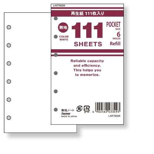 レイメイ システム手帳 リフィル 徳用 111枚入 ポケットサイズ/ミニサイズ 6穴 無地 ホワイト - メール便対象
