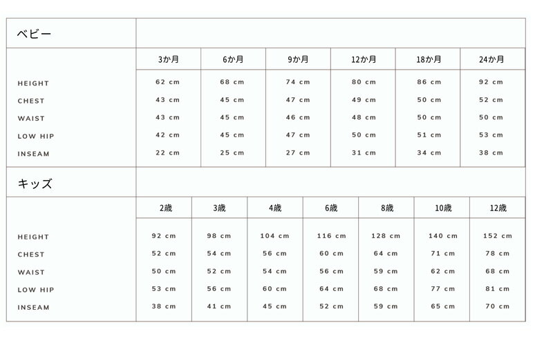 ■■ サイズガイド ■■ 下記表をご確認いただき、お子様に一番近いサイズをお買い求めください。