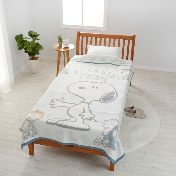 スヌーピー peanuts 綿毛布 シングル毛布 ブルー 西川日本製