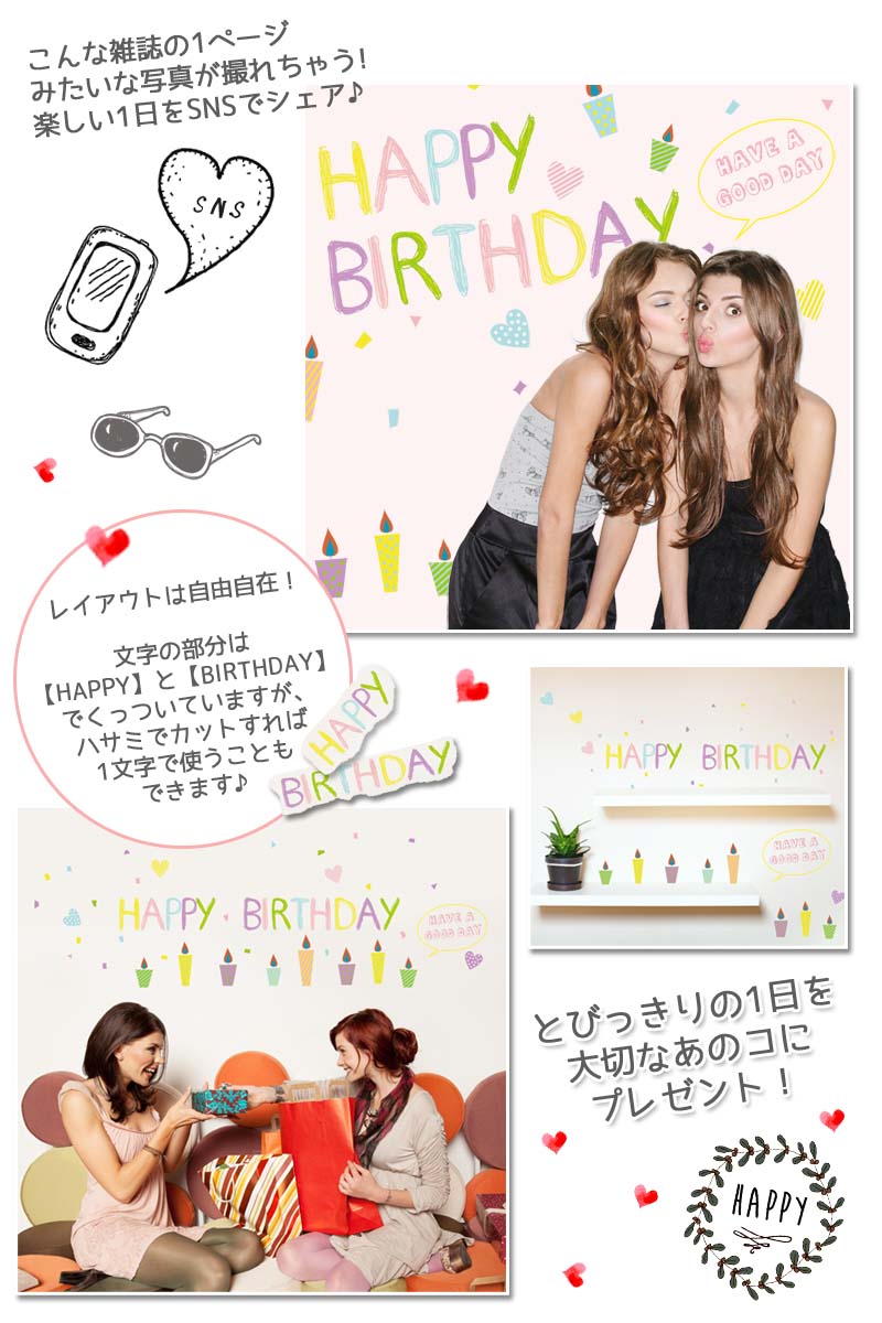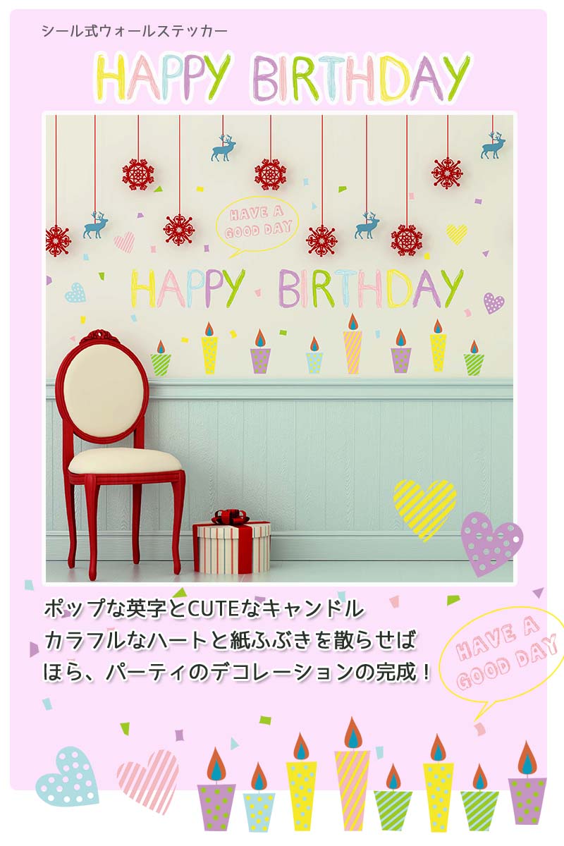誕生日 ウォールステッカー【HAPPY BIRTHDAY】33×58cm シール式 誕生日 パーティー 飾り 飾り付け バルーン 1歳 男 女 即日発送 北欧 身長計 キャンドル ろうそく 花 バースデー 剥がせる 壁紙 お祝い ハート ハーフバースデー プレゼント