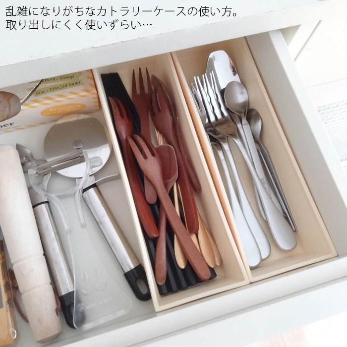 大きさや形がバラバラで収納しづらく、引き出しの中でゴチャつきがちな「カトラリー」。