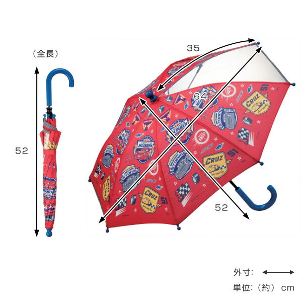 傘 キッズ 35cm カーズ 男の子 ( 子供用 窓付き かさ キャラクター 小さい 小さめ 幼稚園 保育園 手開き 安全 反射テープ 雨 レイングッズ 梅雨 かわいい 約 50 センチ 通園 通学 児童 長傘 キャラ )【39ショップ】