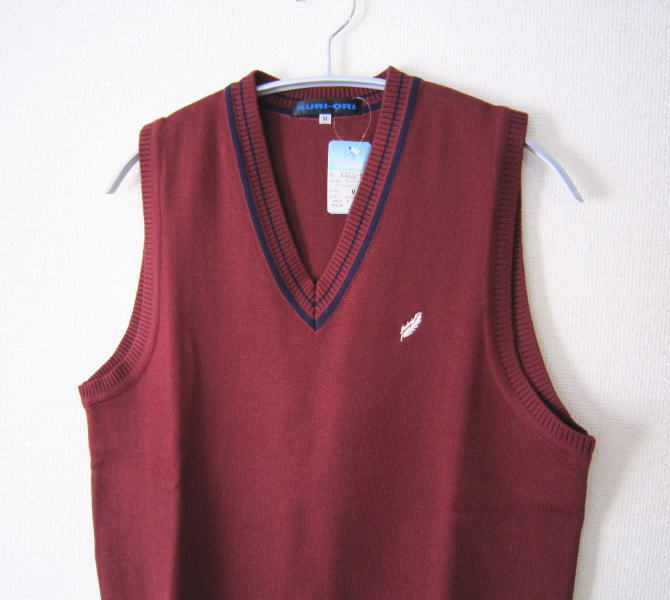 クリオリ ウール混ライン入りVベスト 【男女兼用】KURI-ORI/羽マーク刺繍/制服/学生/トラッド/家庭洗濯OK/日本製