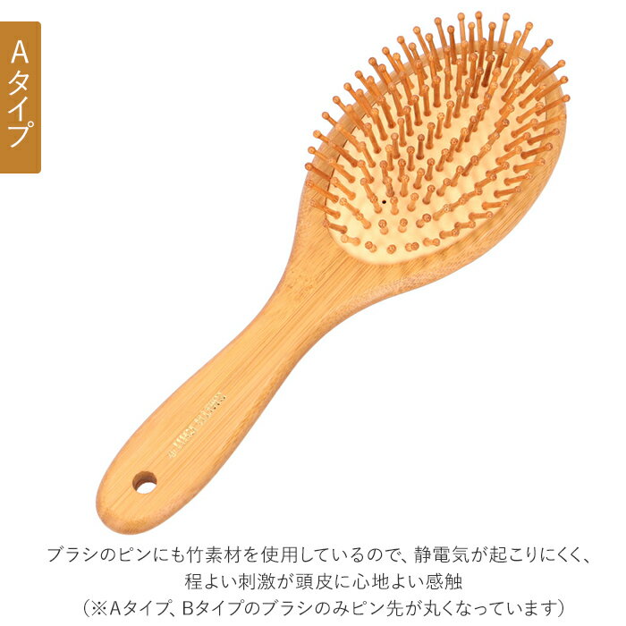 ・ブラシのピンにも竹素材を使用しているので、静電気が起こりにくく、程よい刺激が頭皮に心地よい感触。