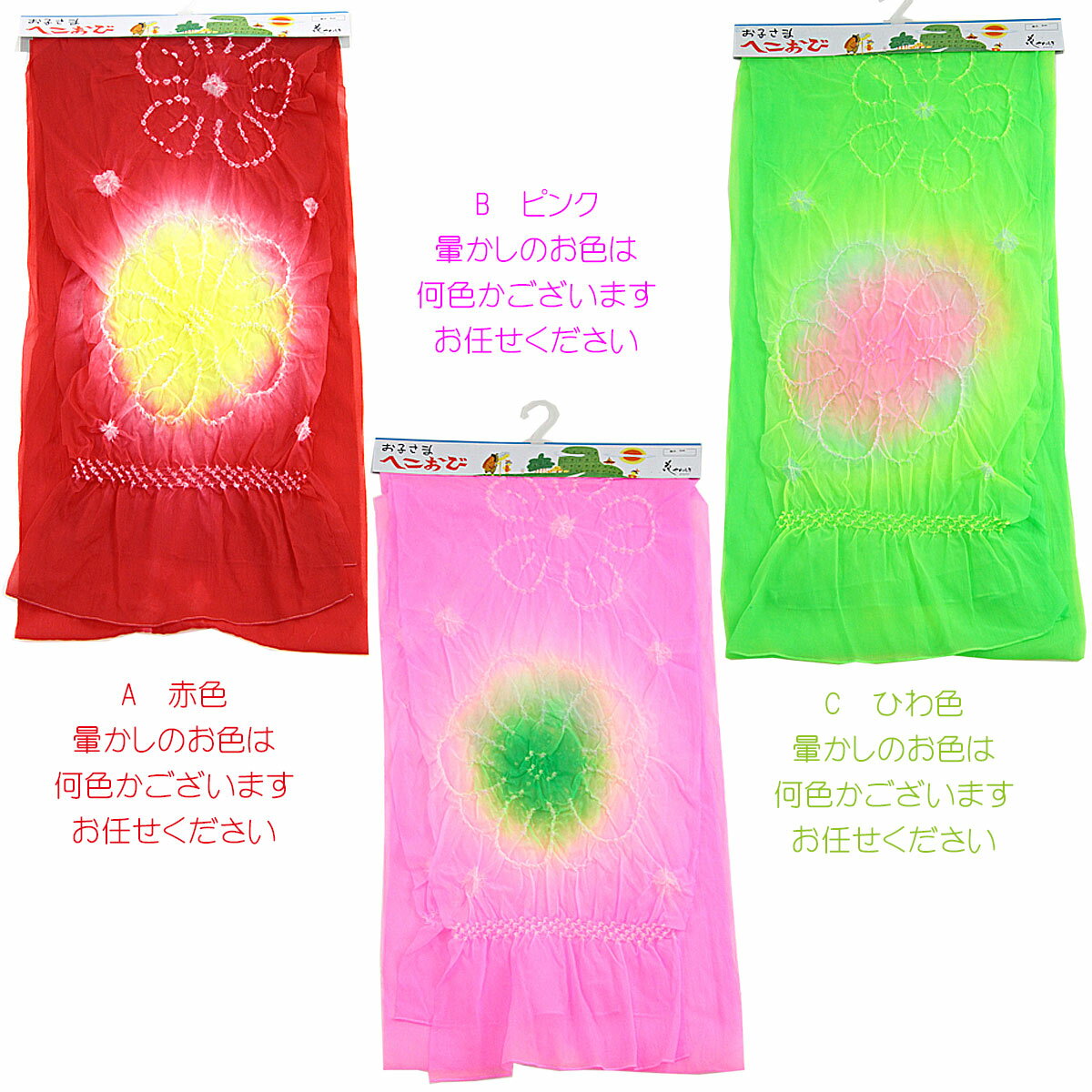【絞りの暈し色について】 暈かしの色は染め上りの時期などにより 画像と異なる場合がございます 色はお任せになりますので何卒ご了承くださいませ メール便のご注意 こちらもどうぞ カテゴリトップ 子供用兵児帯 子供浴衣・甚平
