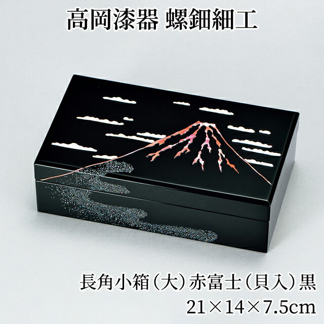 \お得なクーポン配布中!/ 長角小箱(大)赤富士 黒 小物入れ ふた付き 小物ケース 宝石箱 アクセサリーケース 木製 おしゃれ 高岡漆器 螺鈿細工 天野漆器株式会社 伝統的工芸品 プレゼント 贈り物 海外土産 おすすめ 贈り物 高級