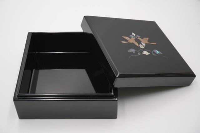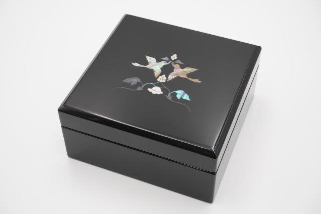 商品名小箱(大)正倉院鳳凰(貝入)黒 サイズ13.3×13.3×6.3cm 材質木製・カシュー塗 職人による手作り製品のため、状況によりましては在庫が無くなる場合がございます。