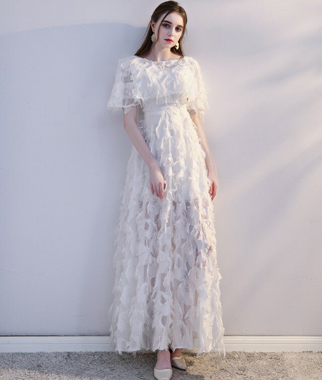 ウエディングドレス カラードレス パーティードレス 結婚式 二次会 花嫁 お呼ばれ ドレス フェザー ショール付き 大きいサイズ 3L 4L ロングドレス スレンダーライン 袖あり 半袖 ノースリーブ 黒 白 20代 30代 40代 上品